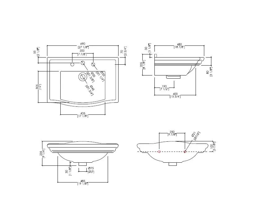Devon&Devon Westminster Раковина (69х49 см) с 1 отверстием под смеситель, цвет: белый