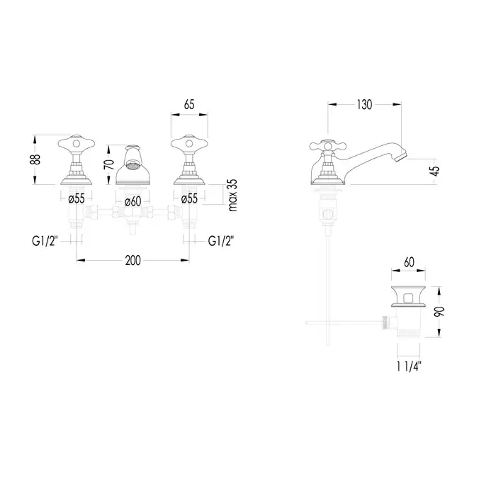 Devon&Devon White Rose Смеситель для раковины на 3 отв.,с донным клапаном, цвет светлое золо UTWR700