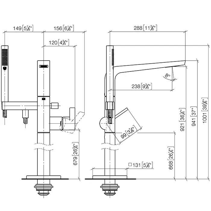 Dornbracht CL.1 Смеситель для ванны, напольный, с ручным душем, цвет: хром 25863705-00