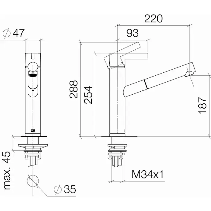 Dornbracht Eno Смеситель для раковины, на 1 отв., Pull-out, цвет: хром 33845760-00