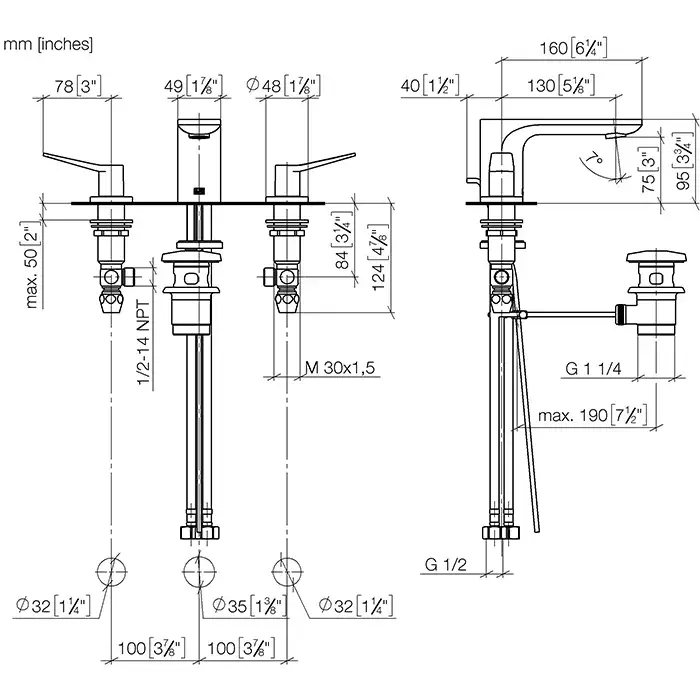 Dornbracht Lisse Смеситель для умывальника на три отверстия, цвет: хром 20713845-00