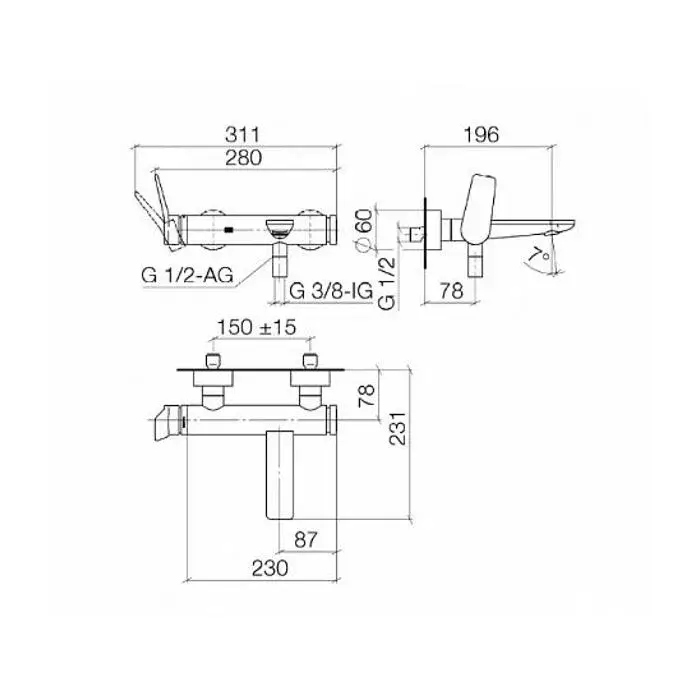 Dornbracht Lisse Смеситель для ванны однорычажный для настенного монтажа, цвет: хром 33200845-00