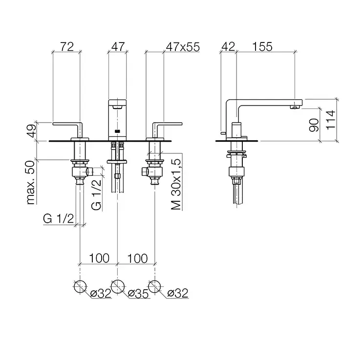 Dornbracht Lulu Смеситель для раковины, на 3 отв., цвет: хром 20713710-00