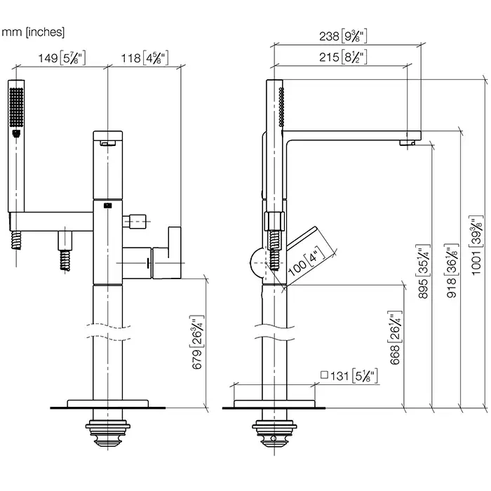 Dornbracht Lulu Смеситель для ванны, напольный, с ручным душем, цвет: платина матовая 25863710-06