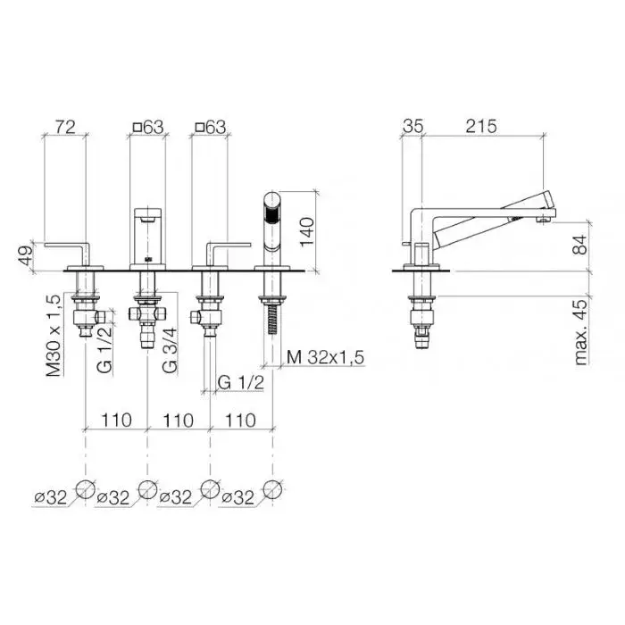 Dornbracht Lulu Смеситель на четыре отверстия для монтажа на борту ванны, цвет: хром 27512710-00