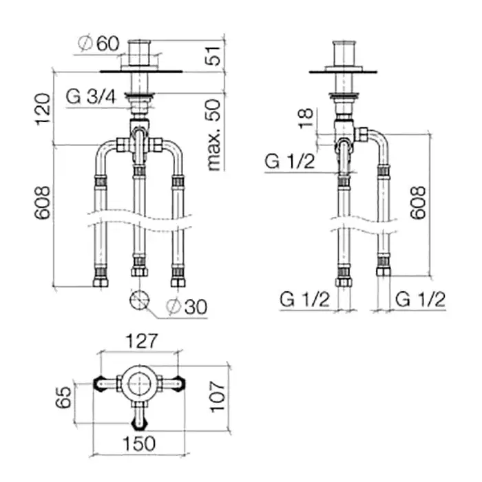 Dornbracht Meta Переключатель потоков, на 1 отв., на борт, на 2 источника, цвет: хром 29140660-00