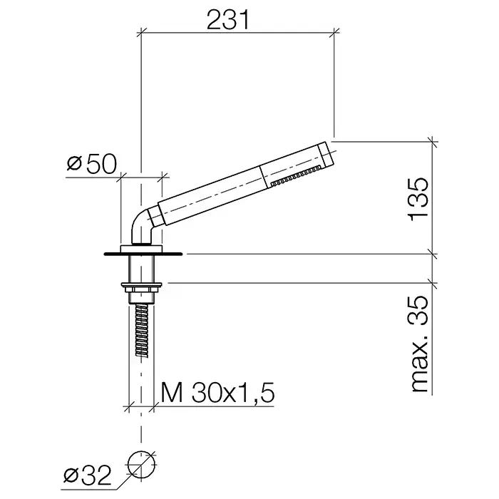 Dornbracht Series-Various Душевой гарнитур со шлангом, на борт ванны, на 1 отверстие, цвет: хром 27702979-00