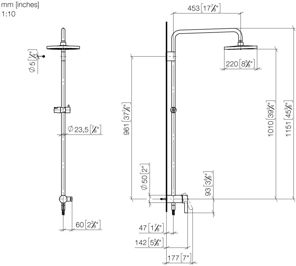 Dornbracht Tara Душевая стойка: смеситель, верхний душ 22 см, штанга 115 см, цвет: chrome 36112970-00