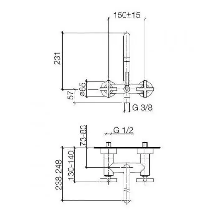 Dornbracht Tara Внешняя часть смесителя из стены на 3 отверстия, с вентилями, излив 16см, цвет: хром 36707892-00