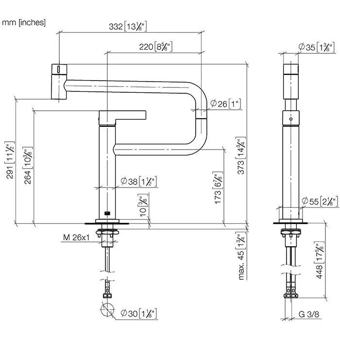 Dornbracht Tara Ultra Pivot Смеситель для раковины, на 1 отв., цвет: хром 33845875-00