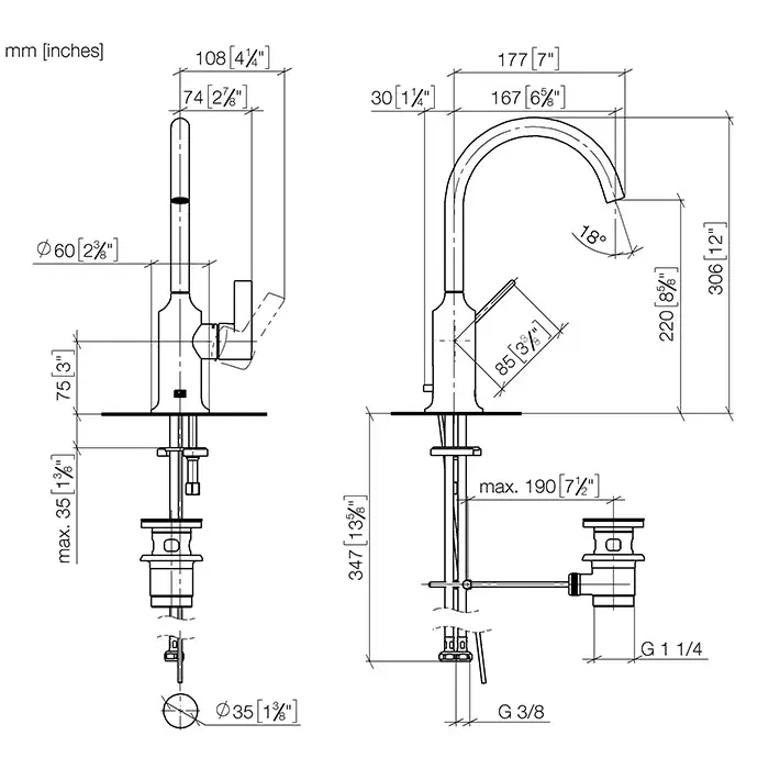 Dornbracht Vaia Смеситель для раковины, на 1 отв., цвет: Dark Platinum matt 33500809-99