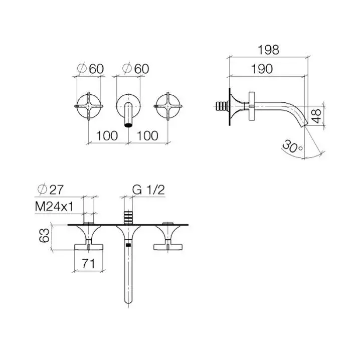 Dornbracht Vaia Смеситель для умывальника настенный без сливного гарнитура, цвет: хром 36712809-00