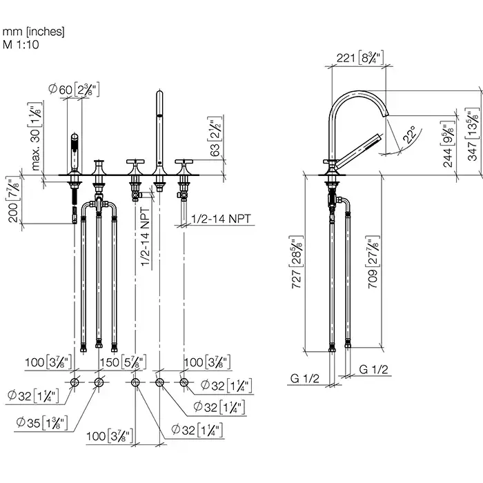 Dornbracht Vaia Смеситель для ванны, на 5 отв., цвет: платина матовая 27522809-06