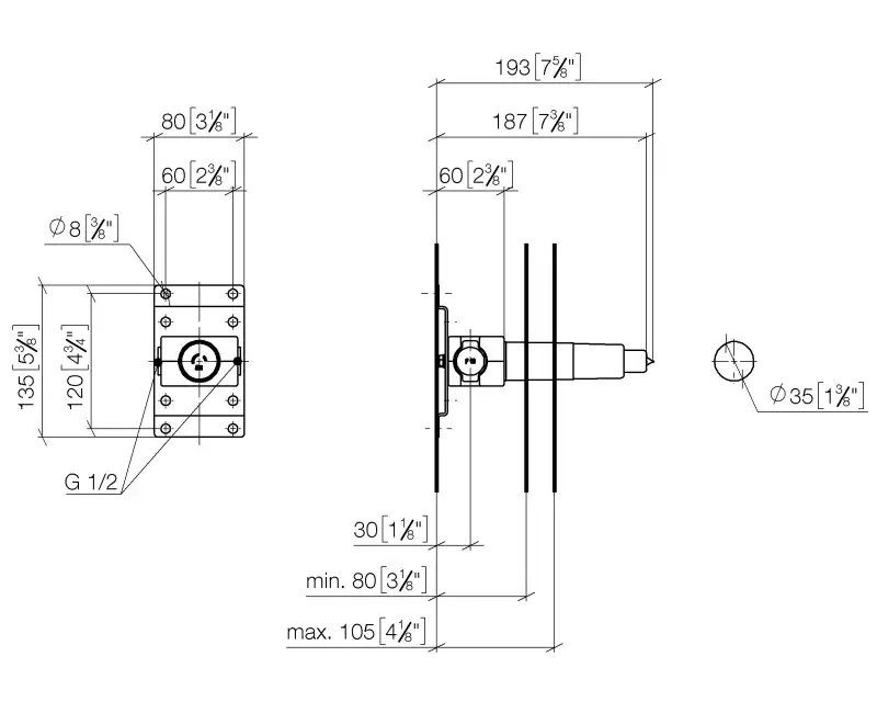 Dornbracht Встраиваемая часть излива и настенного выпуска 1/2" 3508597090
