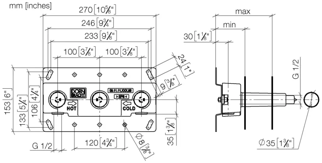 Dornbracht Встраиваемая часть излива и настенного выпуска 1/2" 3508597090