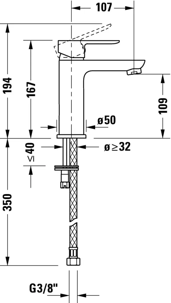Duravit A.1 Смеситель для раковины, 1 отв., излив 107мм, цвет: хром