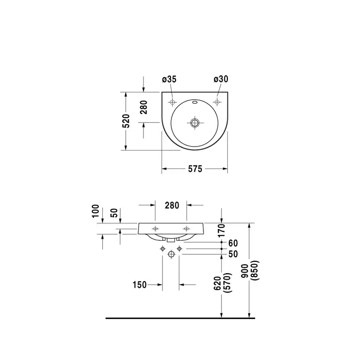 Duravit Architec Раковина с перел., с намеченным отв., 57,5x52 cм, цвет белый 450580000