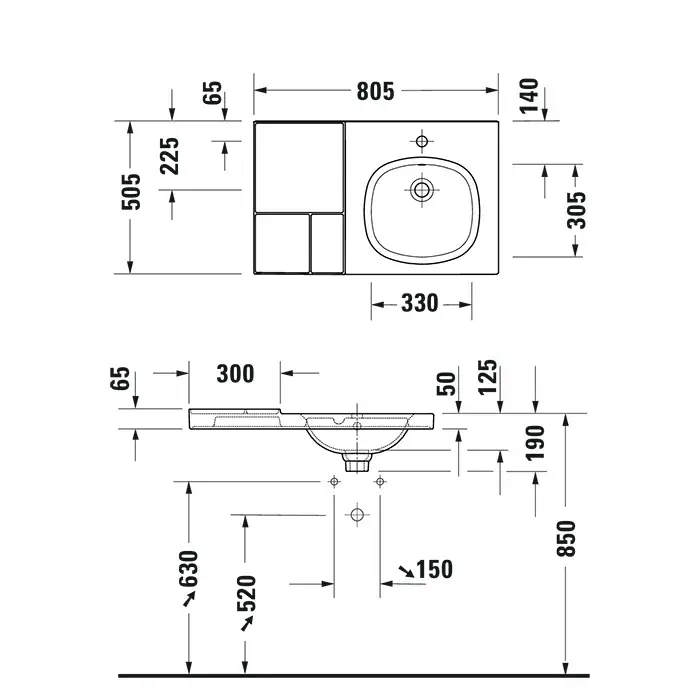 Duravit Aurena Раковина подвесная 800 x 500 мм, правая, с 1 отв под смеситель, ,Цвет: Белый глянец+HygieneGlaze