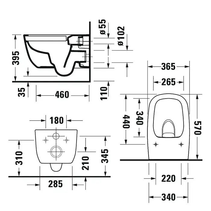 Duravit Aurena Унитаз подвесной 365 x 570 мм, безободковый, с креплением Цвет: Белый глянец
