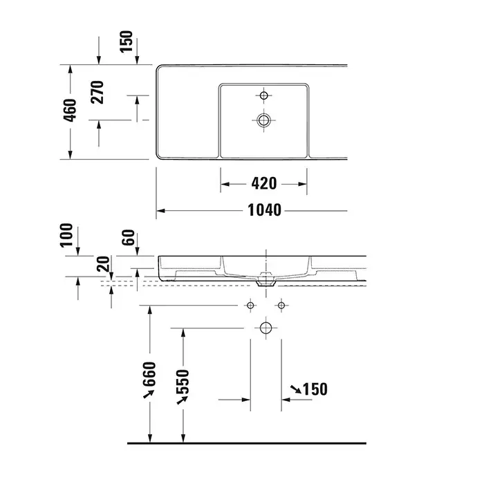 Duravit Bento Starck Box Раковина накладная 104x46x14.5h см, без перелива, цвет: белый глянцевый 2381102071