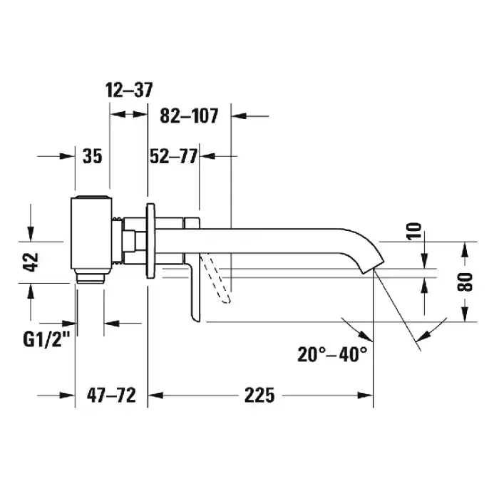 Duravit C.1 Смеситель для раковины скрытого монтажа (наружная часть) излив 225мм, цвет: черный матовый