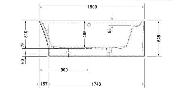 Duravit Cape Cod Ванна пристенный вариант, 190x90см с бесшовной панелью и ножками, с одним наклоном для спины, цвет: белый