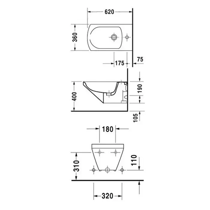 Duravit Caro Биде подвесное 36x62 см, без перелива, с креплениями, цвет: белый глянцевый 0290150000