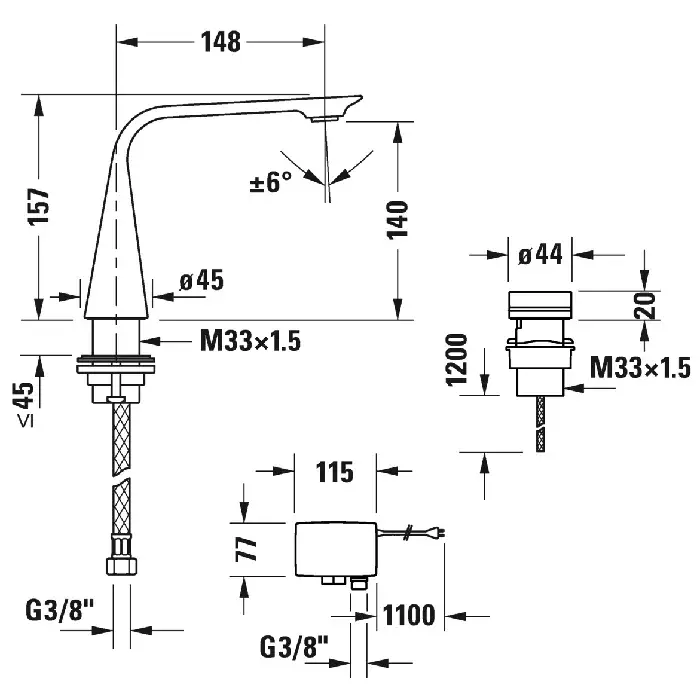 Duravit D.1 Смеситель для раковины на 2 отв. электронный с питанием от сети, цвет: хром