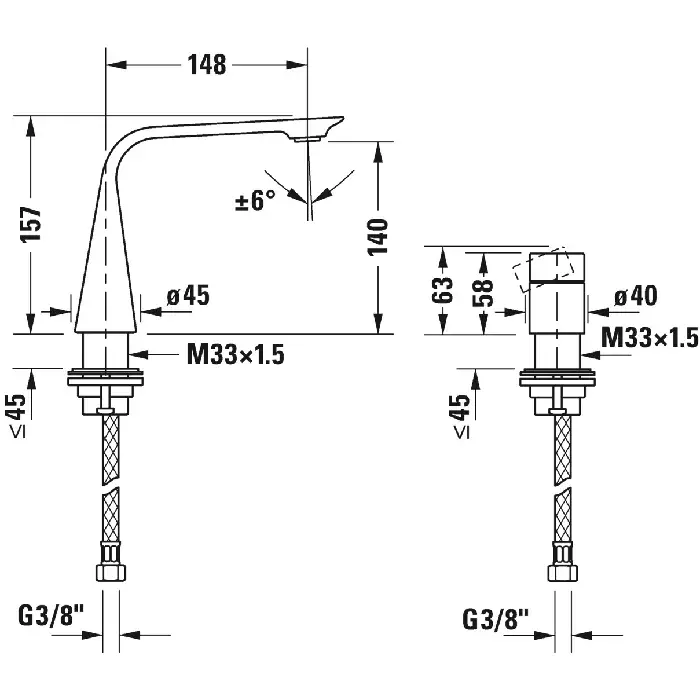 Duravit D.1 Смеситель для раковины на 2 отв., цвет: хром