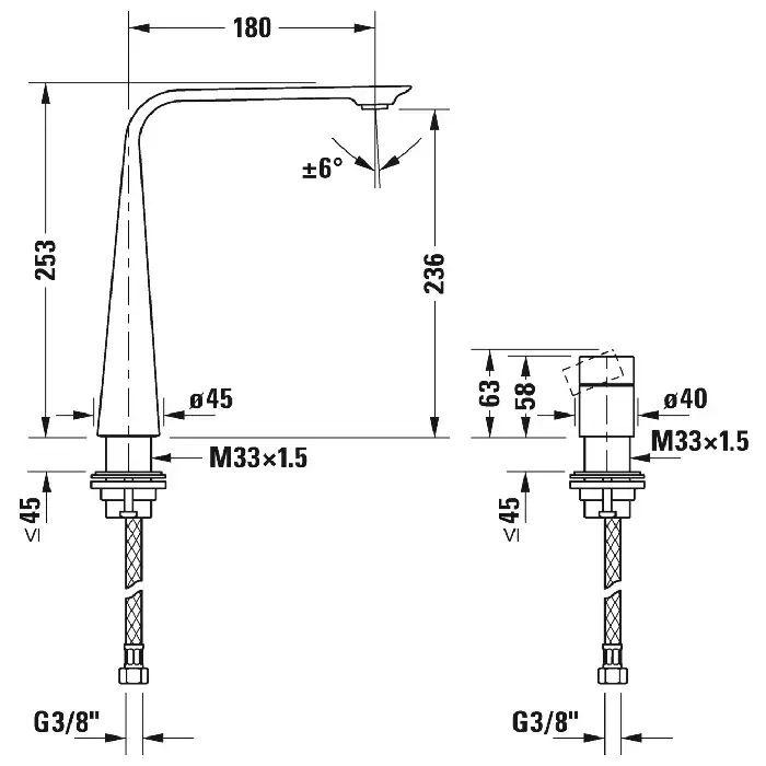Duravit D.1 Смеситель для раковины на 2 отв. высокий h=253мм, электронный, цвет: хром