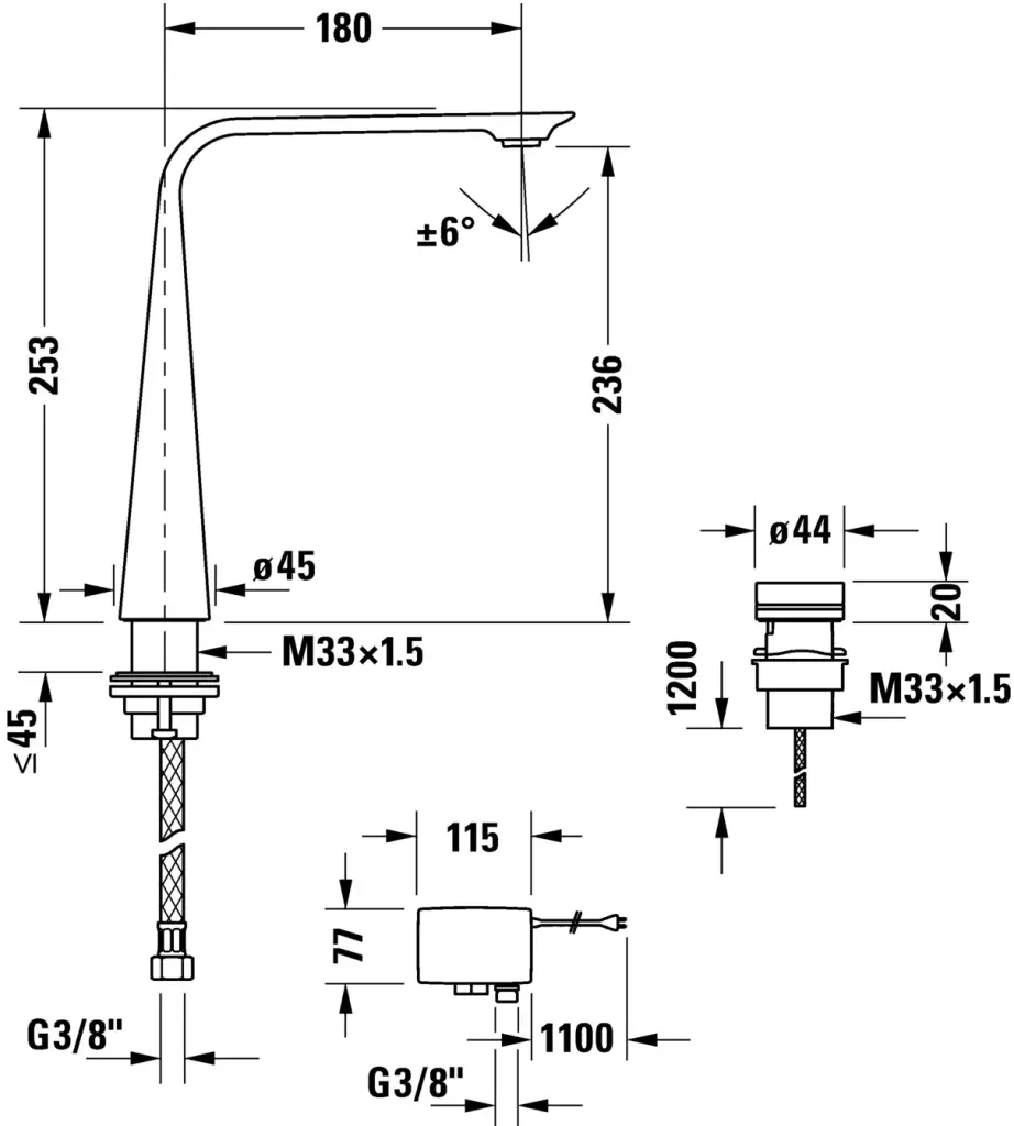 Duravit D.1 Смеситель для раковины на 2 отв. высокий h=253мм, электронный с питанием от сети, цвет: хром