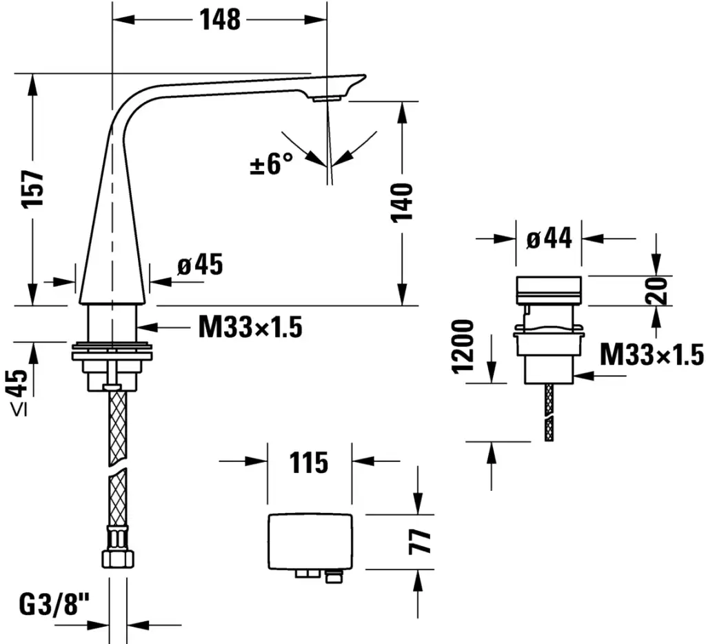 Duravit D.1 Смеситель для раковины на 2 отв. электронный с питанием от сети, цвет: хром
