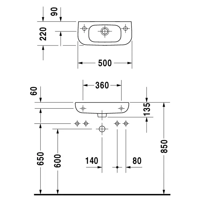Duravit D-Code Раковина подвесная, 50х22см., с 1 отв., Dx, цвет: белый