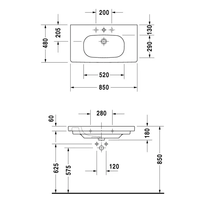 Duravit D-Code Раковина подвесная 85x48x18h см, без перелива, цвет: белый глянцевый 03528500002
