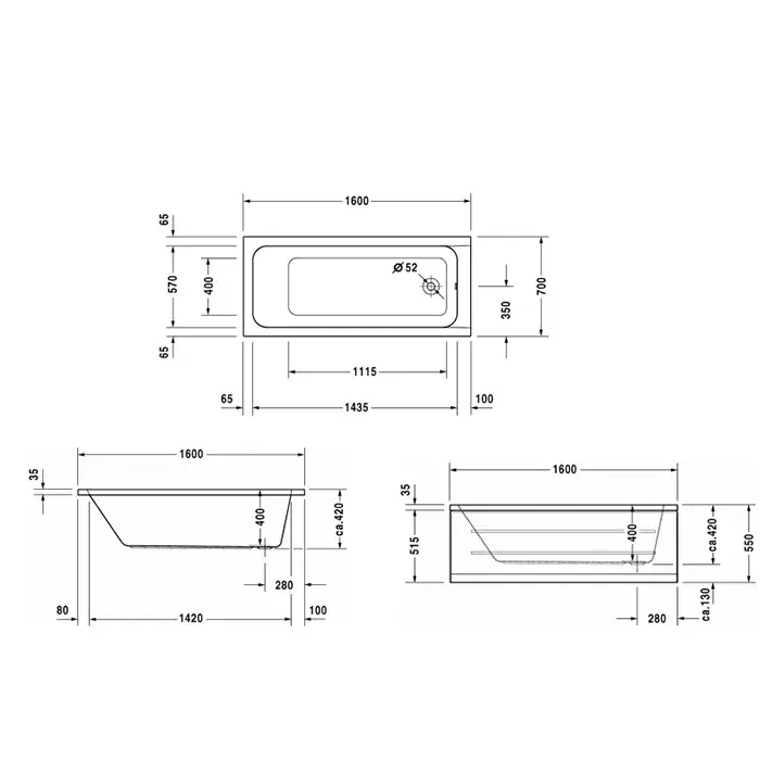 Duravit D-Code Ванна акриловая 160х70 cм, выпуск в зоне ног, цвет белый 700096000000000