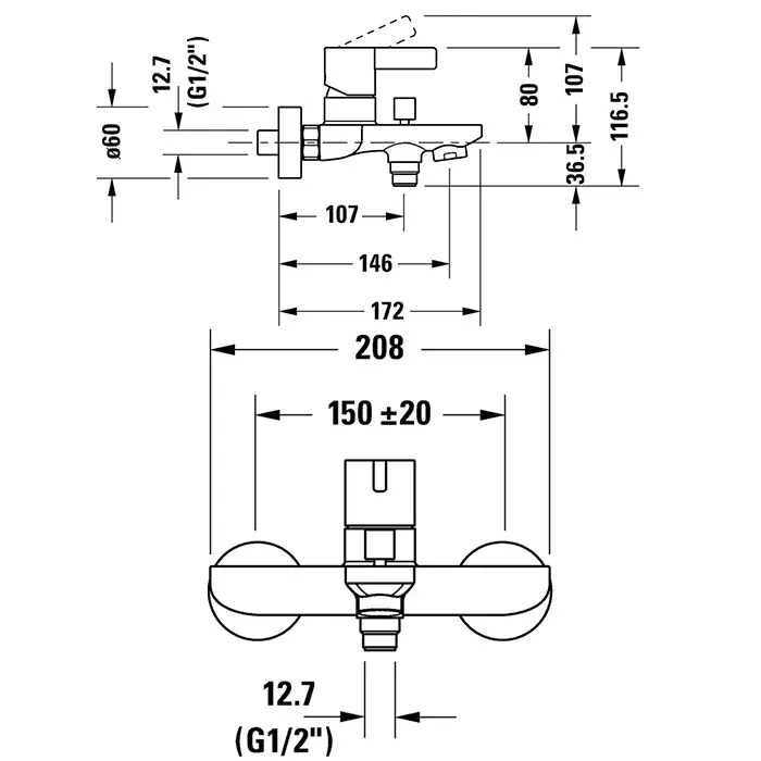 Duravit D-Neo Смеситель для ванны, настенный, цвет: хром
