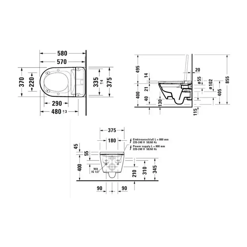 Duravit D-Neo Унитаз подвесной, безободковый, функция биде, подсветка 37x58x35h см, цвет: белый 654000012004300