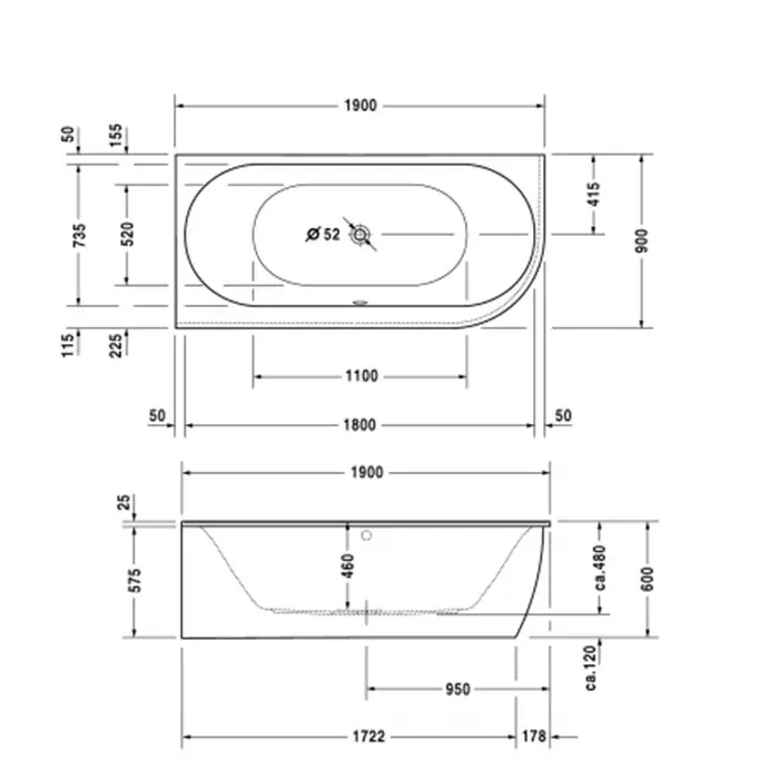 Duravit Darling New Ванна встраиваемая 190х90х60см., комплектация Combi-System L, акрил, цвет: белый