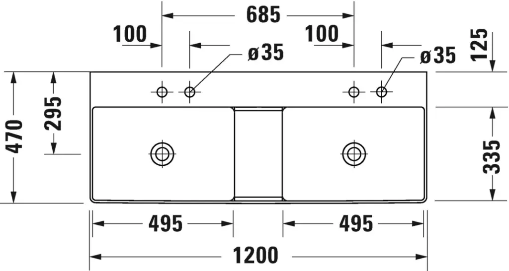 Duravit DuraSquare Раковина двойная подвесная на 2 отверстия 120х47x14,5h см, цвет: белый 2353120041