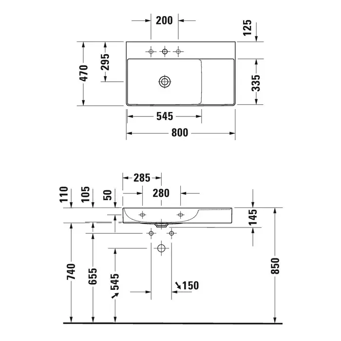 Duravit DuraSquare Раковина подвесная прямоугольная с 1 отв 80x47x14,5h см, цвет: белый 2348800014