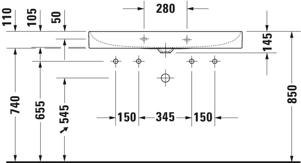 Duravit DuraSquare Раковина подвесная прямоугольная с 2 отв 100x47x14,5h см, цвет: белый 2353100043
