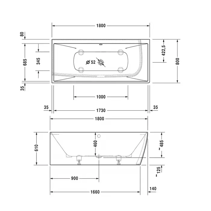 Duravit DuraSquare Ванна прямоугольная встраиваемая 180x80см, с ножками, с2 наклонами для спины, цвет: белый