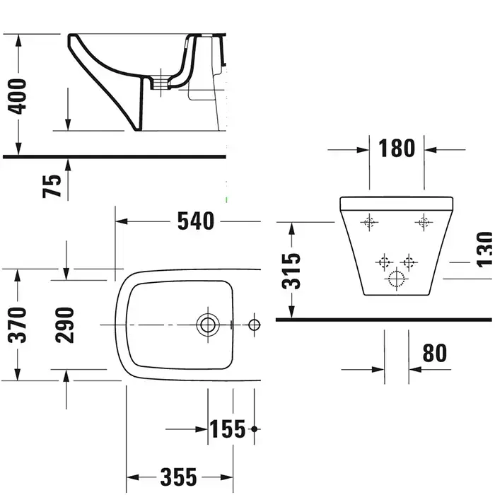 Duravit DuraStyle Биде подвесное 540х370 мм, с 1 отв под смеситель. с креплением, цвет белый