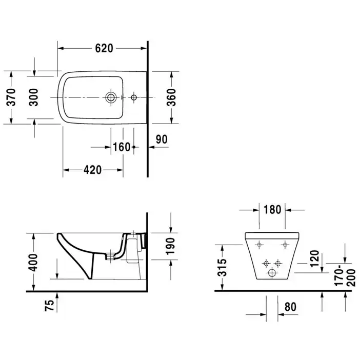 Duravit DuraStyle Биде подвесное 620х370 мм, с 1 отв под смеситель. с креплением, цвет белый