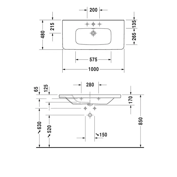 Duravit DuraStyle Раковина для мебели, с перел., 100x48 cм, цвет белый 2320100060