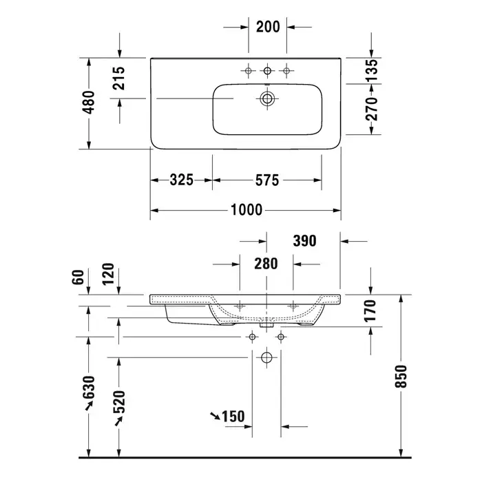 Duravit DuraStyle Раковина для мебели, с перел., 100x48 cм, цвет белый 2326100000