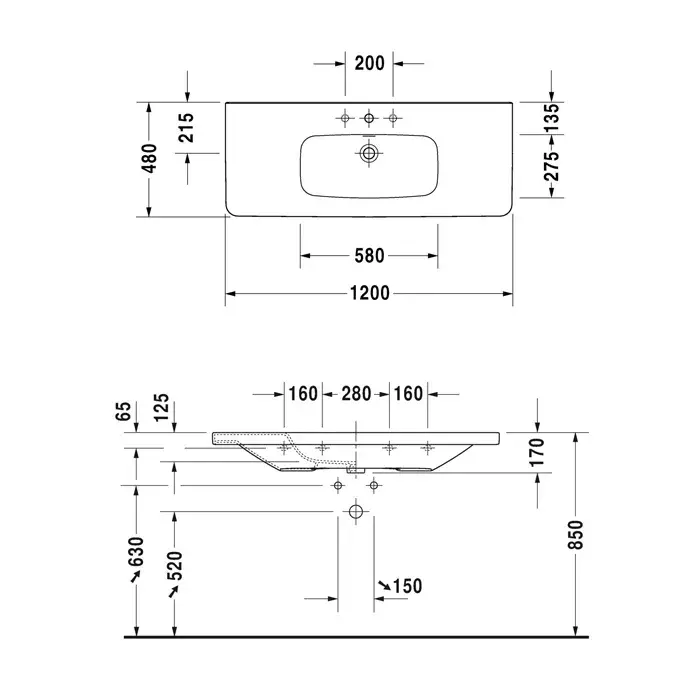 Duravit DuraStyle Раковина для мебели, с перел., 120x48 cм, цвет белый 2320120030