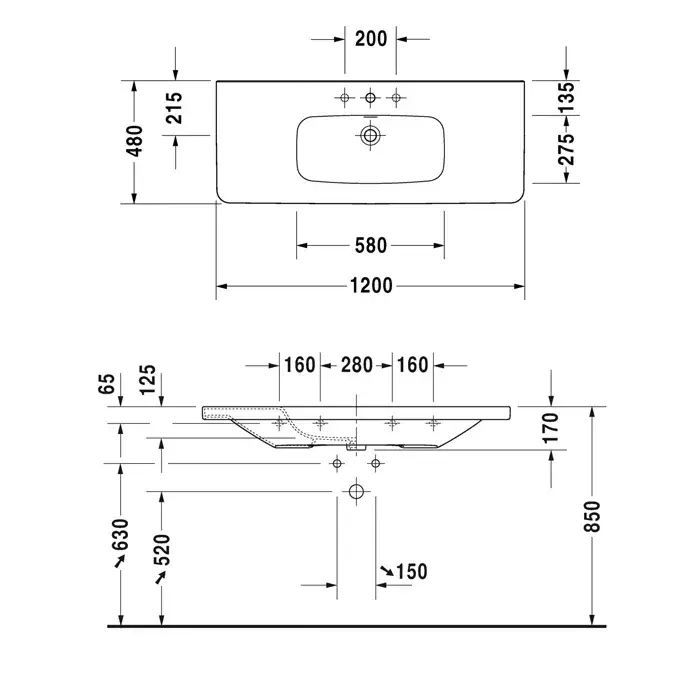 Duravit DuraStyle Раковина для мебели, с перел., 120x48 cм, цвет белый 2320120000