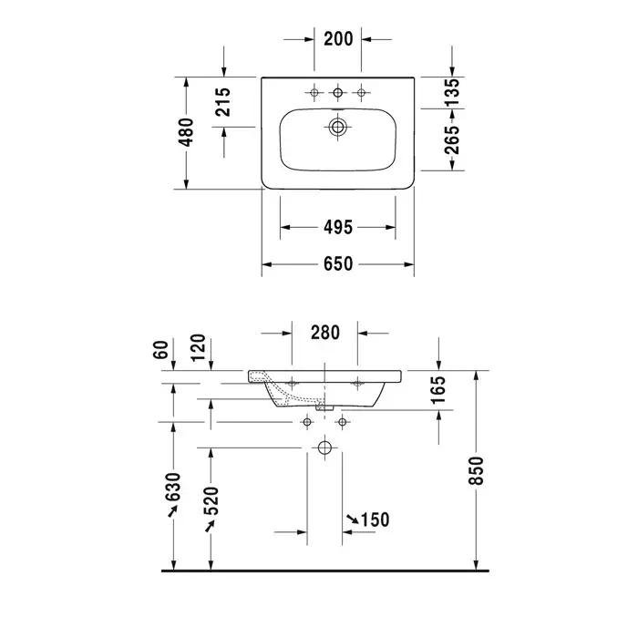 Duravit DuraStyle Раковина для мебели, с перел., 65x48 cм, цвет белый 2320650030
