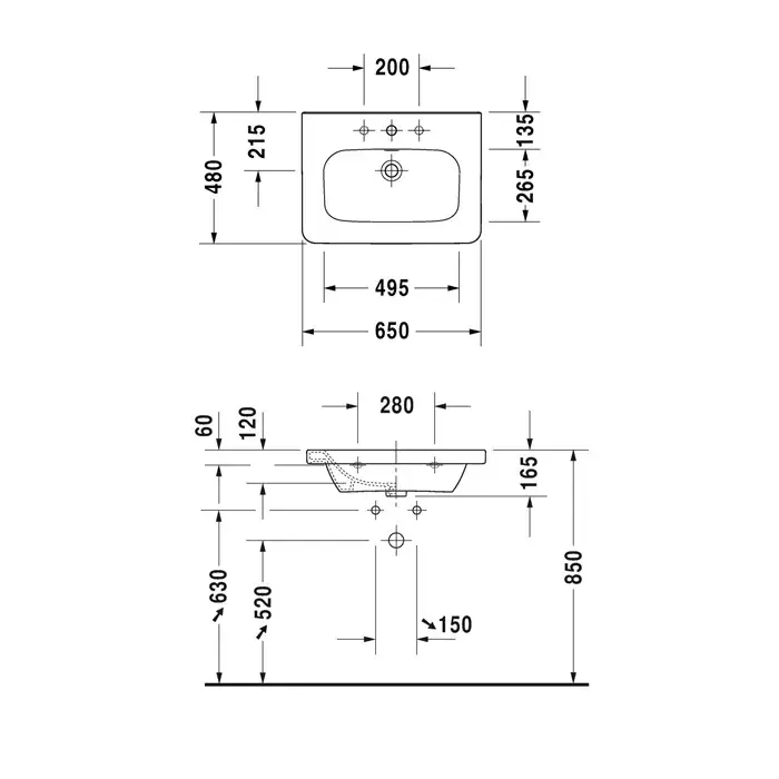 Duravit DuraStyle Раковина для мебели, с перел., без отв. под смес., 65x48 cм, цвет белый 2320650060